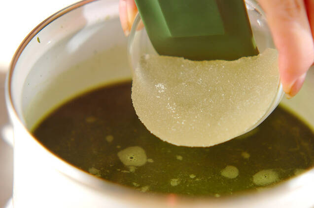 木ベラ等で混ぜながら、さらにゼラチンを加えて余熱で溶かす。