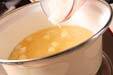 鍋に<合わせだし>を入れて強火にかけ、煮立てば白ネギを加え、白ネギがしんなりすれば大根おろしを汁ごと加える。