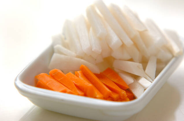 大根、ニンジンは皮をむき、長さ4cmの棒状に切る。