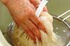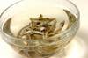 <煮干しだし>の材料を入れ、3時間以上冷蔵庫に置く。だしがでたらザルでこし、煮干しは取り出す。