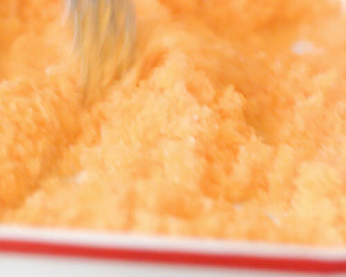 1が固まればフォークで全体にふんわり混ぜ合わせ、再び冷凍庫で凍らせる。凍れば混ぜ合わせ・・・と3~4回くり返し、シャーベット状になったら出来上がり。