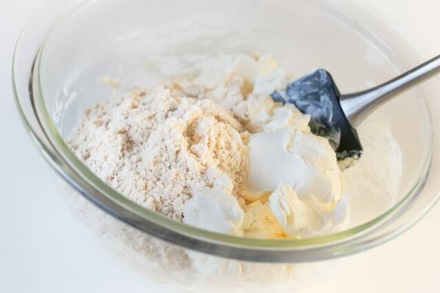 ボウルにクリームチーズを入れ、泡だて器やヘラなどで滑らかになるまで混ぜる。甜菜糖を加えてさらに混ぜる。
