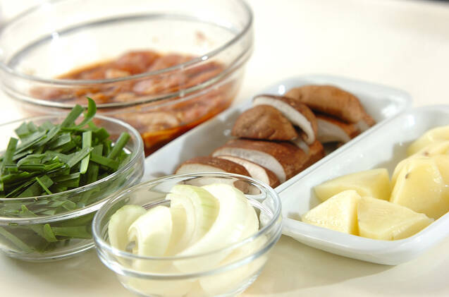 鶏もも肉はひとくち大に切り、<下味>の材料をもみ込む。