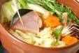 土鍋に<合わせだし>を入れ強火にかけて煮立てば、お好みの具を入れながら、火が通った物から、だし汁と共に刻みネギ、ユズ、一味唐辛子でいただく。