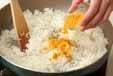 ターメリックを加えて炒めあわせ、炊飯器に入れる。