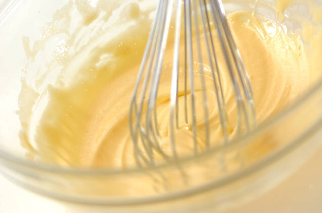 <カスタードクリーム>を作る。(1)鍋に牛乳、バニラビーンズ(サヤごと)、グラニュー糖の一部を加え、沸騰直前まで火にかける。(2)ボウルに卵黄、残りのグラニュー糖を入れ、白っぽくなるまですり混ぜる。コーンスターチを加え、サッと混ぜ、1の半量を注ぎ入れてよく混ぜる。1の鍋に戻し入れ、ボコボコ沸騰してツヤが出るまでしっかり混ぜながら火を通す。バターを加えて全体に混ぜ、バットに移し入れ、表面にぴったりラップをし、底に氷水をあてる。粗熱が取れたら冷蔵庫で冷やす。(3)ボウルに生クリーム、粉糖を入れて8分立てにする。2をボウルにこしたものを加えて混ぜる。