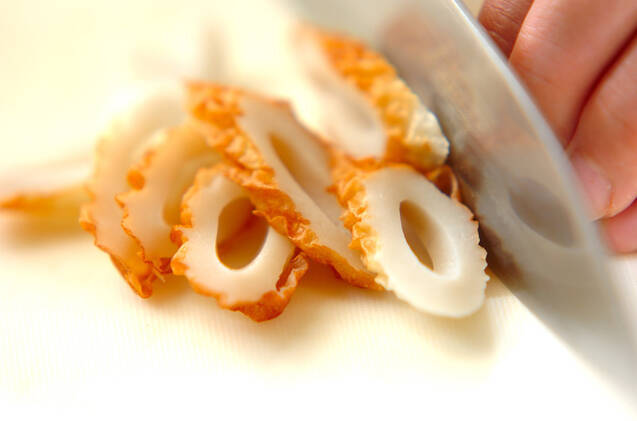 ちくわは斜め切りにする。