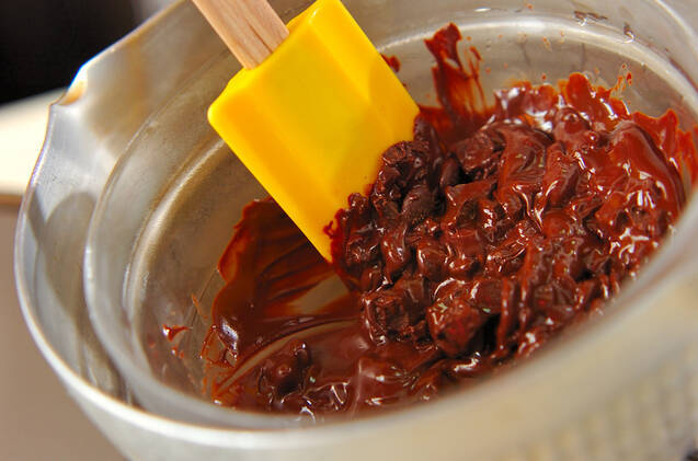 ボウルに刻んだチョコレートを入れ、湯煎で溶かす。