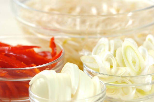 玉ネギは幅1cmに切る。
