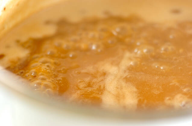<アルベールソース>を作る。鍋にオリーブ油を熱し、マッシュルーム、玉ネギを炒め、ノイリー酒、白ワインを入れて煮詰める。さらにヒュメ・ド・ポワソン、グラス・ド・ビアンを加えて煮詰めていく。仕上げに無塩バターを加える。