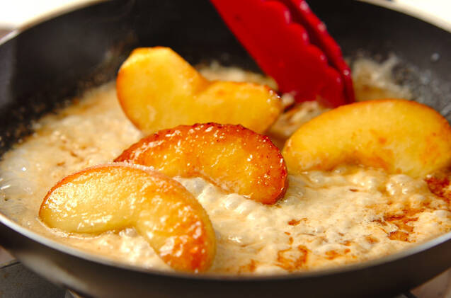 生クリーム、塩を加えて4~5分煮詰め、器に盛ってミントの葉を飾る。