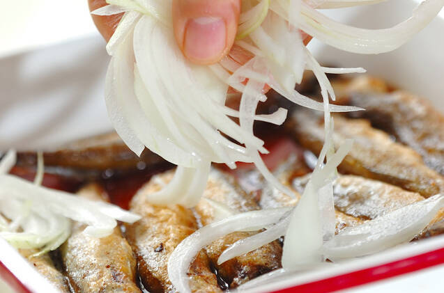 シシャモの甘酢玉ネギのせ