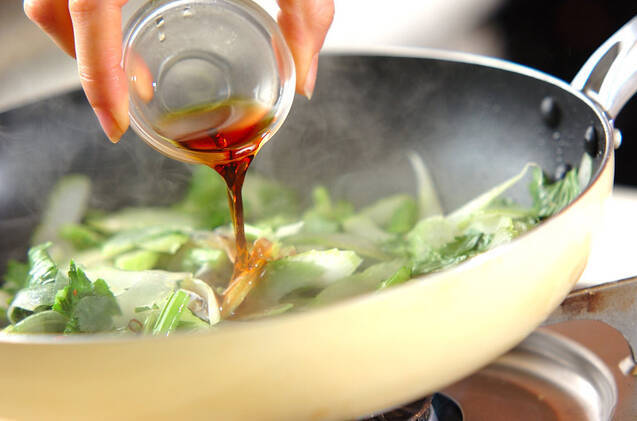 <調味料>の材料を加えてザッと炒め、器に盛る。