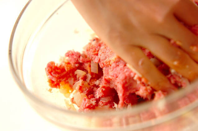 <タネ>の材料を練るようによく混ぜ合わせる。