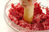 玉ネギはみじん切りにする。※5mm角位でOK。細かくし過ぎると、玉ネギから水分が出やすくなります。