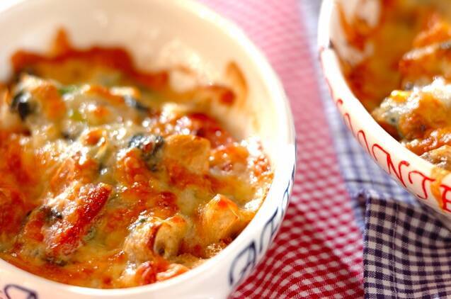 いつもはマカロニをつかうグラタンですが、今回はパングラタンを、ということでバゲットを使ってみました。