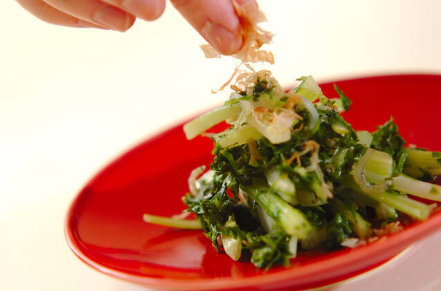 器に盛り、かつお節をのせる。