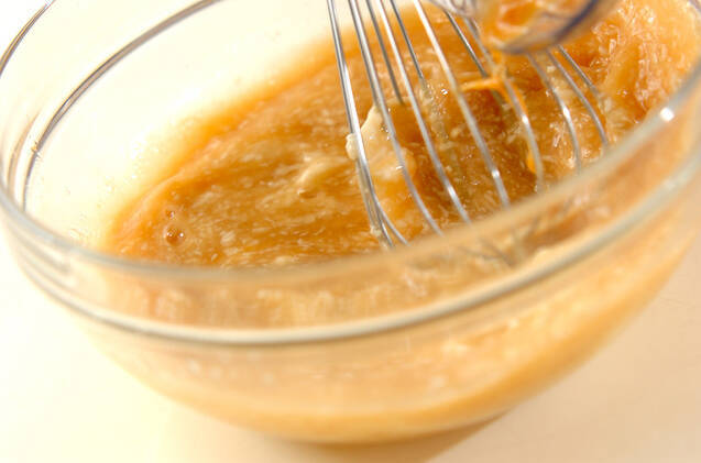 (1)に<合わせだし>を少しずつ加えながら混ぜ合わせる。