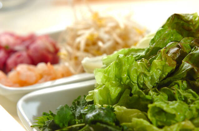 豚肉は幅3cmに切る。むきエビは背ワタを取り、洗って水気をきる。