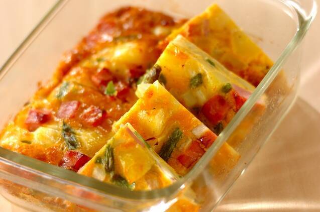 お弁当には欠かせない卵料理も具だくさんにする事で食べ応えばっちり! 焼いている間は他のおかず作りに取り掛かりましょう!