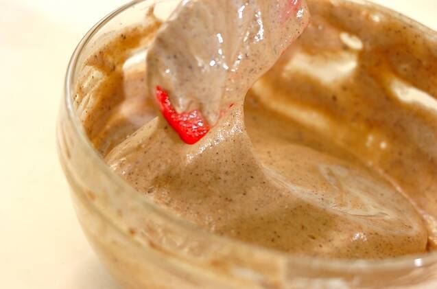 薄力粉を振るい入れて、切り混ぜる。均一になったら、サラダ油と牛乳を加えて、切り混ぜる。