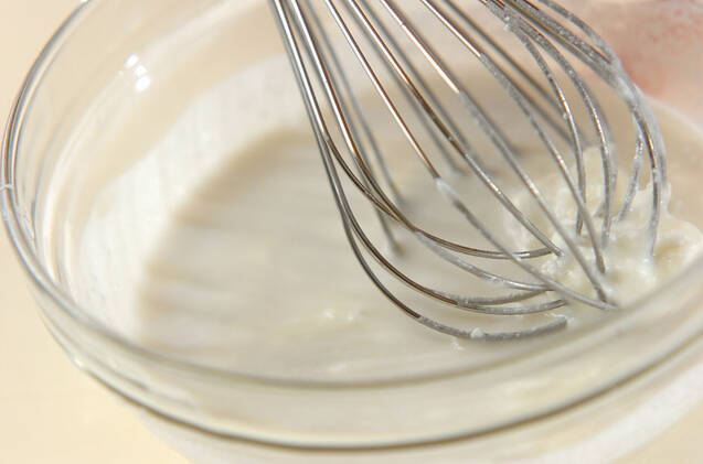 ボウルにココナッツミルク、牛乳、ハチミツを加え、泡立て器でよく混ぜ合わせる。さらにプレーンヨーグルトを加えてよく混ぜ合わせる。