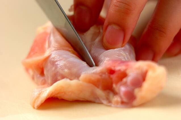手羽元は水洗いし、水気を拭き取る。骨の際を包丁の先で刺し、切り込みを入れる。