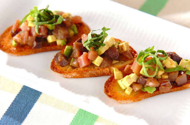 5mm角に切ったアボカドとカツオを、レモンとニンニクで和えたおしゃれな一品。おもてなしに最適です。