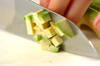 ボウルでレモン汁、ニンニク、しょうゆ、砂糖を合わせ、カツオとアボカドを加えて和える。