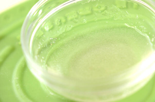 水大さじ1.5に粉ゼラチンを振り入れてふやかす。(ヒント)水にまんべんなく粉ゼラチンを振り入れることでダマになるのを防ぎ、あとで溶けやすくします。
