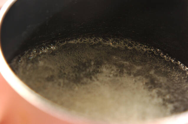 鍋に水200ml、粉寒天を入れ、よく混ぜて強火にかける。煮たったら砂糖を加え、砂糖が溶けたら少し火を弱め、煮たてた状態で1分煮る。