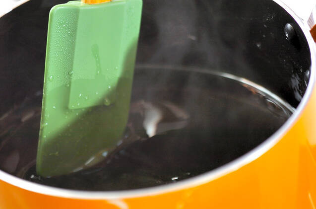 鍋に水と粉寒天を加えてよく混ぜて中火にかけ、沸騰した状態で1分程度混ぜながら煮る。砂糖25gを加えて煮溶かし、火を止める。