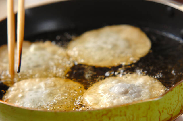 180℃の揚げ油に入れ、色よく揚げる。器に盛り、粉砂糖を振り掛ける。