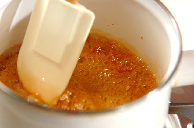 鍋に<みつ>の材料を入れて中火にかけ、少しトロミがつくまで煮つめる。