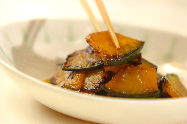 焼き色がついたら、オイスターソースをまわしかけ、カボチャ全体にからめる。器に盛り、ドライパセリを振る。