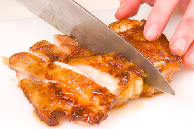 器にご飯を入れてのりを散らし、3を食べやすい大きさに切ってのせ、野菜を盛り合わせる。残った3のタレをかけ、白ゴマを振り掛ける。