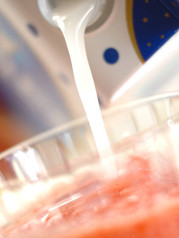 乳酸菌飲料を注ぎ入れ、ミントの葉を添える。