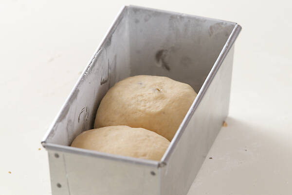 閉じ目を下にして食パン型 の片側に寄せて並べる。大きめの透明なビニール袋に、乾燥しないように熱湯を入れたコップと一緒に入れて温かい所において食パン型の7分目くらいまで膨らむのを目安に二次発酵させる。又はレンジの発酵機能を使って二次発酵させる。(約30分)※オーブンを200℃で20~30分に予熱する。※ここではガスオーブンを使用しています。オーブンにより、温度差や焼き時間には違いがあるので、ふだんからお家のオーブンの癖を知っておくことをおすすめします。目安として小型の電気オーブンの場合、レシピより10~20℃高い設定にして下さい。