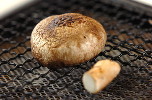 シイタケは石づきを切り落として汚れを拭き取り、軸と笠に切り分ける。網でこんがり焼き色がつくまで焼き、軸は縦に裂き、笠は薄切りにする。