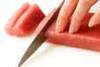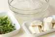 長芋は皮をむいて水に放ち、キッチンペーパーで水気をふき取り、細切りにする。