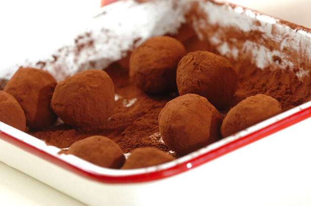 バットにココアを広げ、(1)を転がしながら全体にまぶし、器に盛る。