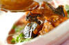 器に(3)のキャベツ、貝われ菜を広げ、(2)を煮汁ごと盛り合わせる。