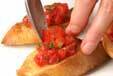 食べる直前に(1)のバゲットに(2)の冷やしたトマトをのせる。器に盛り、粗びき黒コショウを振る。