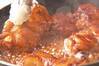 フライパンにサラダ油大1を中火で熱し、汁気を軽く拭き取った鶏肉の皮側を下にして入れる。焼き色がつけば鶏肉を返して、蓋をし火を弱めて7~8分焼き、中まで火を通し、余分な脂を捨てる。