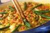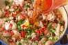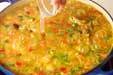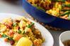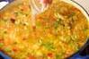 煮立てばスープを少し飲んで味をみて、塩コショウで味を整える。煮立ってくればレモン汁1/2個分をまわしかけ、弱めの中火で7~8分煮る。パエリアの具がヒタヒタにスープに浸かっていなければ水を足して下さい。