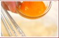 半分の分量に分けて作ります。バターを泡立て器でクリーム状に練り、粉糖を加えよく混ぜ合わせる。卵黄を加え、さらによく混ぜ合わせる。