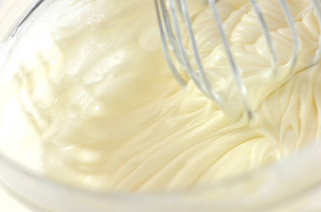 ボウルにフロマージュブラン、グラニュー糖、レモン汁を入れ、泡立て器でなめらかになるまで混ぜる。