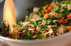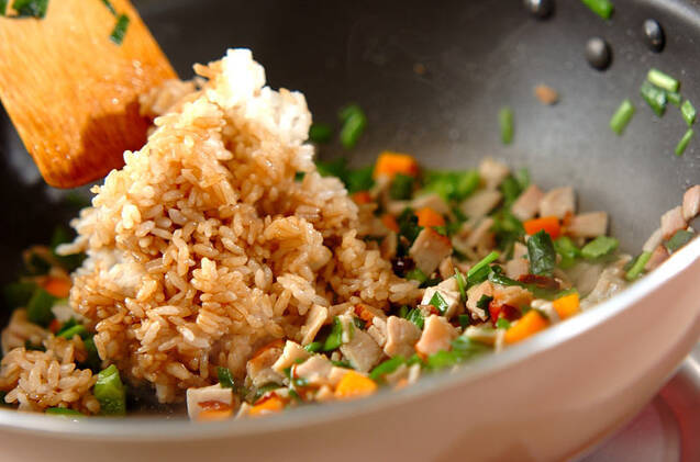 全体に火が通ったらご飯を加え、塩コショウで味を調える。
