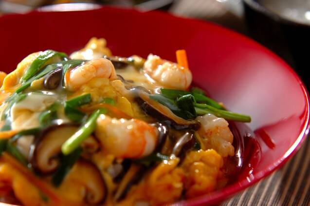 ふわとろやみつき!具だくさんニラ玉あんかけ