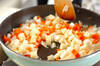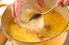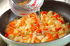野菜が柔らかくなったら、豆乳、バナナ、カレールウを入れてよく混ぜ、カレールウが溶けたらしばらく煮込む。